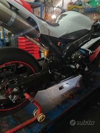 Yamaha r1 solo pista modello 16 valvole 2007-2008,telaio con fattura a mio nome in originale,motore appena revisionato, documentabile sost bronzine, albero motore lucidato e equilibrato, guarnizione testata yec,assi a camme riprofilati , condotti asp e scarico lavorati, rapporti 520 e catena Did nuova,candele yec,centralina yec,cambio elettronico e bleepper IRC, controllo di trazione e antiwhelling Irc, terminali Leovince titanio e y decat Leovince, serbatoio carburante totalmente in carbonio maggiorato 21litri sospensioni Mupo , cartucce complete forcella,Mono Mupo, protezioni carbonio telaio motore e forcellone,dischi freno Discacciati flottanti 310, pinze Brembo P4 introvabili,post Braking Wawe,pinza freno rovesciata con attacco inferiore Brembo con registri catena Lightech ergal rossi,pedane Lightech, manubri racing Accossato,Pompa freno anteriore Brembo Rcs 19x18- 20 , comando remoto leva freno ant Bonamici ,condotti aria maggiorati in carbonio, tanto altro che ora non ricordo moto pronto gara e a regolamento Fmi per gare Open SBK, nessun lavoro da fare vendo a 5500 poco trattabili ,valuto anche smembramento solo dopo vendita motore