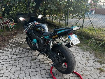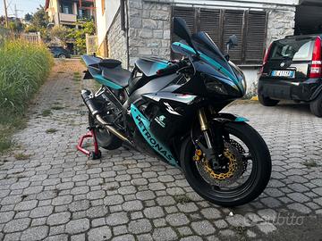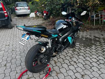 Yamaha yzf r1 del 2002 colorazione petronas circa 60.000 km revisione ok gomme Pirelli rosso corsa 2 con circa 2000 km monta dischi freno flottanti pompa brembo 19/18 mono e ammortizzatore di sterzo bitubo e scarico storm con dbkiller estraibile. La moto è iscritta asi