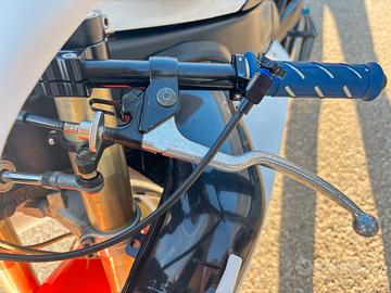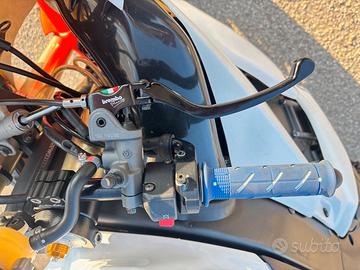 POMPA FRENO ANT BREMBO 19 RCS CON REGISTRO AL MANUBRIO SINISTRO, TUBI FRENO DOPPI DALLA POMPA ANTERIORE E POSTERIORE, DISCHI FRENO ANT E POST BRAKING, SEMI MANUBRI, PEDANE REGOLABILI, CAMBIO AL DRITTO O A ROVESCIO CON MILLE RIGHE RINFORZATO RACING, MONO AMMORTIZZATORE MATRIS, POMPANTI MOLLE E FORCELLE MATRIS, TAPPO BENZINA RACING, INTERRUTTORE ON/OFF REACING, ELIMINATORE CATALIZZATORE PIU' TERMINALI AKRAPOVIC CON DB KILLER, RAPPORTI PER VARIE PISTE (MISANO, MAGIONE, VALLELUNGA, MUGELLO), CARENE COMPLETE PRONTO PISTA RACING, GOMME AL 50%.