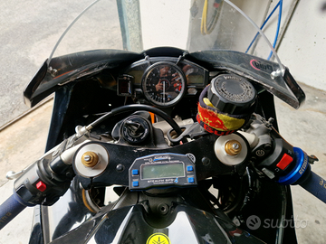 con soli 27000 km, mai caduto,usata 5/6 volte in pista, motore originale mai aperto, cambio elettronico, GPS sterline, dischi da pista breaking, pedane arretrate, catena