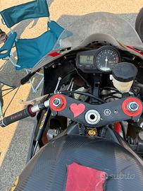 Vendo Yamaha R1 solo pista con telaio radiato con documenti. Anno 2000 con 26.000km coi seguenti accessori: Dischi SBK 6mm 320 Avantreno ducati 996R Ammortizzatore di sterzo Mono WP Scarico completo Termignoni Kit catena corona e pignone 520 con catena ERV7 DID nuovi Trattamento interno serbatoio antiruggine sabbiato e ceramicato (garantito a vita) Gas rapido Domino Pompa Brembo 19x18 Radiatore maggiorato Filtro BMC lavabile La moto e’perfettamente funzionante, va veramente forte. Sospensioni appena rifatte con paraoli SKF alta scorrevolezza Le carene sono integre, ricoperte con oellicola al carbonio Valuto permute con moto 2 tempi di mio gradimento