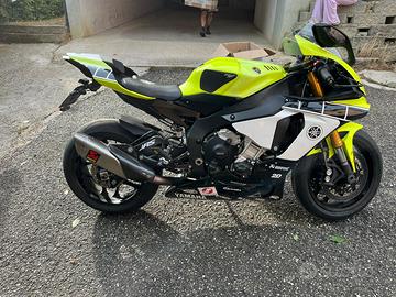 Vendo splendida Yamaha r1 del 2015 full optional, scarico completo akrapovic, pedane arretrate, doppie carene quelle gialle che vedete in foto più quelle originali rosse e bianche dell'anniversario, semimanubri regolabili, sellino mono posto , cambio elettronico in salita e tanta ma tanta potenza . Vendo per inutilizzo a malincuore.