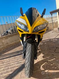 Vendo splendida yamaha r1 anno 2005 km 38.000 colorazione laguna seca(non numerata) scarico completo akrapovic, pompe freno brembo,tubi in treccia,specchietti modello rizoma,fari led. Pneumatici bridgestone s22 con 5 600km. Tagliandata a 35mila km con cambio olio e filtro olio. No perditempo e indecisi! Valuto scambio con moto piu comode turistiche.