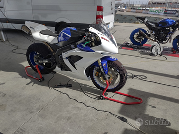 R1 2006 targata ma ad uso pista, ammortizzatore di sterzo holins,pedane arretrate, semimanubri, pastiglie racing, terminali mivv, centralina mappata by peppo russo (190cv) , filtro aria,impianto elettrico semplificato, in scatola ho impianto elettrico fanali anteriori, blocchetto chiavi originale ecc, non dispongo delle carene originali, sempre tagliandata con motul. Prezzo trattabile. Purtroppo cedo per inutilizzo.