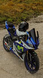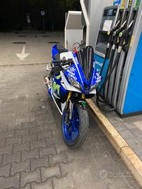 Vendo Yamaha R125 del 2017. Ha circa 37000 km. Sempre mantenuta correttamente, lavori quasi sempre effettuati da me e tagliandata ogni 3500km con olio castrol. Meno di 1000km fa montati dischi e pastiglie nuovi, 3000km fa montata catena nuova. Sono il terzo proprietario e la moto ha avuto 2 incidenti non gravi (un tamponamento a 15/20kmh e un frontale in un parcheggio sempre a bassa velocità. Dopo il secondo incidente (solo danni estetici) l'ho portata a nuovo cambiando direttamente tutte le carene, ho messo scarico dominator, leve nuove regolabili, paraleve, cupolino, frecce led e faro posteriore trasparente con frecce integrate.