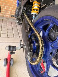Yamaha R3 – uso pista (no documenti) Vendo Yamaha R3 ad uso esclusivo pista, anno tra il 2020 e il 2022. Moto preparata con componenti di alto livello, ideale per track day o competizioni. Allestimento: Sospensioni Öhlins Cambio elettronico Frizione antisaltellamento STM Pedane regolabili Semimanubri racing LighTech Scarico completo Akrapovic Carene in vetroresina Manutenzione: Catena, corona e pignone nuovi (solo 1 uscita di mezza giornata a Pomposa) Tagliando appena effettuato Sella in neoprene NUOVA Moto pronta all’uso, nessun lavoro da fare. Contattami per ulteriori informazioni.