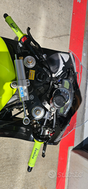 Vendo Yamaha r6 modello 2006 versione vr46, moto con preparazione al top, ma regolarmente immatricolata e con tanti parti originali ancora disponibili, la moto monta praticamente tutto il necessario per andare forte in pista, blipper cambio anche in scalata pepporusso, tutto kit ohlins, radiatore aggiuntivo, mappa yec, scarico completo, pedane, semimanubri, catena did, doppio cerchio posteriore ecc... la moto ha pochi km non si vedono perché ha la yec, montata da pista da circa 3 anni prima usata pochissimo in strada per semplici passeggiate, motore perfetto e completamente originale! La vendo perché la usavo come seconda moto per allenamento, mai fatto gare, ma non ho più tempo per utilizzarla
