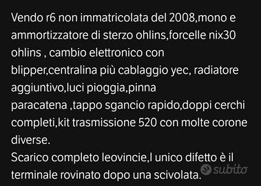 Yamaha r6 pronto pista con foglio di conformità (non necessita di passaggio)