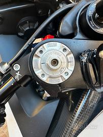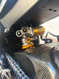 Protezioni motore in metallo, protezioni telaio in carbonio, tamponi para carena, semimanubri regolabili extreme components, pedane arretrate regolabili, pompa freno Brembo 19 rcs, sospensioni anteriori Öhlins Nix-30 con molla da 95, mono ammortizzatore Öhlins ttx-gp, centralina Yeccata by Peppo Russo con cambio elettronico rovesciato e blipper, scarico completo Mivv in titanio, pastiglie freno brembo Z04 come nuove, e sicuramente altre cose. La moto è stata usata in pista per qualche stagione a livello amatoriale per non più di 2000/3000 km, mai caduta, e poi riportata stradale. Disponibili alcune parti originali (semimanubri, pedane, frecce e portatarga, ecc.). Prezzo leggermente trattabile, no offerte ridicole. Solo concessionarie interessate all'acquisto diretto. Contattatemi per foto e video. Possibilità di trasporto a Milano e provincia previo accordo e acconto.