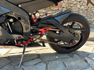 Yamaha R6 del 2009 con 28000 km. Mai incidentata e mai caduta, con carene originali e tenuta in modo maniacale. Cambio olio motore e filtro appena eseguito con motul 7100. La moto ha le seguenti modifiche: -scarico completo Leovince SBK -modifica ai cornetti di aspirazione Venturi System -esclusione di sonda lamba e valvola di scarico -filtro aria BMC -catena DID passo 520 con corona e pignone in ergal(rapporti originali) -cavi in treccia -pedane arretrate ros moto -mappatura dedicata a banco da Magistrati Racing. Oltre ha questi ha tantissimi accessori quali: -tutta la viteria in ergal compresi serbatoi liquido freni -tamponi laterali -tamponi proteggi forcella e/forcelle -parafango posteriore in carbonio -copri telaio completi in carbonio -cupolino Puig fumè -leve frizione e freno -monoposto effetto carbonio -specchietti effetto carbonio La moto è stata usata in modo amatoriale in strada per giri domenicali e negli ultimi anni solo per qualche uscita in pista a Castelletto di Branduzzo. Dispongo di tutti i pezzi originali, chiavi doppie e chiave rossa. Bollo 2026 pagato.