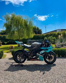 Vendo bellissima Yamaha r6 del 2010 annata migliore per la sua serie perfetta in tutto senza nessun tipo di lavoro da fare!! Moto pronta per la stagione un vero siluro di moto con cambio elettronico, scarico completo da collettori full titanio e finale akrapovic omologato, mappa motore con blipper in scalata, conta marce, gomme come nuove diablo sc2, pedane arretrate, tubi in treccia, sella monoposto, fanali angel eyes, cupolino doppia bolla, pompa freno brembo, gas rapido, motore totalmente revisionato con lavorazione su valvole di scarico eseguito 7000km fa, la moto sul tachimetro segna 52 mila km ma come ripeto è stato già revisionato e anche la frizione nuova, forcelle revisionate luglio 2025 anche pastiglie anteriori tutto verificabile, grafica petronas unica nel suo genere, possiedo tutti i ricambi originali, vendo solo per passaggio a 1000