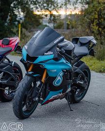 Yamaha R6 2018 - 30.000 km - Perfetta, tenuta maniacalmente Vendo Yamaha R6 del 2018 in condizioni impeccabili, sia meccaniche che estetiche. Moto tenuta in modo maniacale, sempre pulita dopo ogni uscita, mai presa acqua e mai una scivolata. Manutenzione sempre eseguita da personale competente. A metà stagione è stato fatto un tagliando completo con sostituzione olio motore, candele, controllo gioco valvole, pulizia corpo farfallato e sostituzione della trasmissione. Batteria nuova. Monta scarico completo Akrapovic con mappa dedicata, pedane arretrate e diversi componenti estetici (doppie carene, leve e altri dettagli). Moto pronta all'uso, perfetta per chi cerca un mezzo affidabile, curato nei minimi particolari e sempre trattato con la massima attenzione. IMPORTANTE: contattare solo se realmente interessati e visione dal vivo fondamentale.