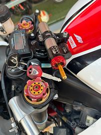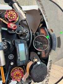 Vendo r6 uso pista Anno 2006 Moto in perfette condizioni Dotata di cambio elettronico, pompanti mupo, ammortizzatore di sterzo e posteriore matris Pompa brembo e dischi baffati Frizione antisaltellamento Scarico leovince completo e centralina ecubike Correlata di cavalletto posteriore E 1 Pirelli sc1 posteriore nuova Moto radiata uso pista