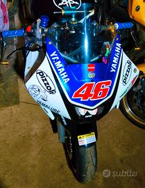 Vendo yamaha r6 da pista (moto radiata solo per uso pista) la moto monta tanti accessori tra cui forcelle e mono posteriore tarate, semimanubri, kit dynojet sui carburatori, filtro sportivo, scarico sc project , pompa freno radiale accossato, tubi in treccia, leva frizione della brembo, ammortizzatore di sterzo matris, pasticche nuove, gomme pirelli supercorsa sc1 con spalla da 60 sul posteriore le gomme sono al 90%, carene aggiornate del modello 2008, dischi a margherita nuovi, sicuramente qualcosa dimentico PREZZO TRATTABILE.....NO PERDITEMPO