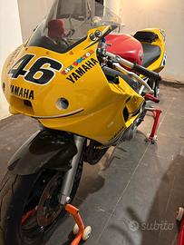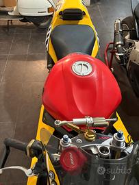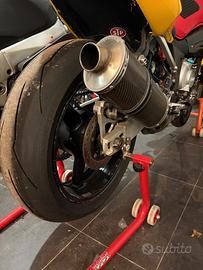 Acquistata tre anni fa e completamente revisionata, forcelle anteriori totalmente revisionate con steli nuovi, collettore carburatori nuovo, pompa acqua nuova, impianto frenante e tutta la manutenzione possibile è stata effettuata, non perde un goccio di acqua o di olio sia in garage che in marcia. Le gomme Diablo Supercorsa hanno i miei circa 50 km in pista...