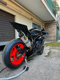 Come da titolo vendo Yamaha R6 2010 pronto pista. La moto si presenta in ottime condizioni e da quando e' in mio possesso e' stata usata davvero poco. La moto e' regolarmente immatricolata ed io sono il terzo proprietario (CarVertical disponibile). Comprata a luglio 2024 e usata per 2 giornate a Vallelunga e Mugello. LISTA ALLESTIMENTO COMPLETO NELL'ULTIMA FOTO. Ripeto, la moto e' stata usata per 2 giornate in totale e da meno di un mese e' stato eseguito tagliando completo. Qualche danno estetico di poco conto, in seguito ad una caduta della moto da fermo, ma la moto e' in ordine e pronta a girare, bollo già pagato fino a marzo 2026. Per qualsiasi info o visita con meccanico contattare su whatsapp al 3662587701. NO SCAMBI GRAZIE