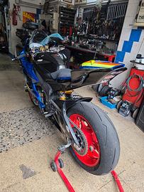 Vendo Yamaha R6 pronto pista versione 2007 immatricolata 2008 da passaggio. La moto non necessita di alcun tipo di intervento sempre curata e tenuta maniacalmente ed è allestita con i seguenti accessori: - Kit molle e pompanti mupo - Mono ohlins TTX - CENTRALINA YEC con blipper IRC appena sostituito (nuovo) - Catena passo 520 (con 2 uscite pista all'attivo) - Pedane arretrate lightec - Kit carene e telaietti anno 17-24 - Tamponi para telaio e forcella accostato - Para telaio in carbonio - Protezioni carter motore in carbonio - Radiatore aggiuntivo - Scarico akaprovic in titanio con silenziatore in carbonio - Pastiglie racing e tubi in treccia freni ant. e post. - Semi manubri Robby moto - Pulsantiere dedicate - Gas rapido Robby moto - Ammortizzatore di sterzo ohlins rotativo - Filtro K&Ñ - Cornetti aspirazione euro racing fissi più alti - Tegolino telaio airbox in carbonio - Motore stock con testata revisionata e guarnizione YEC - Tappo benzina racing Prezzo poco trattabile.