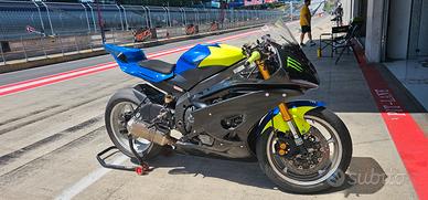 Vendo Yamaha r6, moto con preparazione al top, ma regolarmente immatricolata e con la maggior parte dei ricambi originali ancora disponibili, la moto monta praticamente tutto il necessario per andare forte in pista, blipper cambio anche in scalata pepporusso, tutto kit sospensioni ohlins mono cartuccia e amm sterzo, radiatore acqua aggiuntivo, mappa yec, scarico completo, pedane, semimanubri, catena did, doppio cerchio posteriore ecc... montata da pista da circa 3 anni prima usata pochissimo in strada per semplici passeggiate, motore perfetto e completamente originale! La vendo perché la usavo come seconda moto per allenamento, mai fatto gare, ma non ho più tempo per utilizzarla, valuto permute e scambi con altre moto o auto o scooter