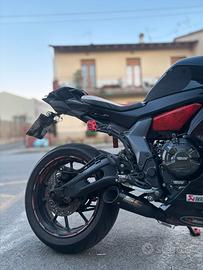 Yamaha YZF-R7 2024 DEPO A LIBRETTO – GUIDABILE CON A2 Vendo splendida R7 2024 depotenziata a libretto (guidabile con patente A2). Moto sempre tenuta con grande cura, sempre al coperto e usata occasionalmente anche in pista. 👉 Potenza: 83 CV 👉 Condizioni: ottime 👉 Prezzo: trattabile nei limiti dell’umano 😉 ⸻ 🛠️ Accessori e componenti inclusi Moto super accessoriata, pronta sia per strada che per pista: Gomme: •Pirelli Diablo Rosso IV (80%) •Pirelli SC1 (50%) •4 anteriori Dunlop Sportsmart MK4 Carene e ricambi: •2 kit carene (pista + strada) •Numerosi ricambi inclusi Scarichi: •Completo Akrapovič •SC-Project •Scarico originale (0 km, per revisioni) •2 scarichi Akra/LV replica Componentistica racing: •Piastra di sterzo alleggerita •Semi-manubri alleggeriti •Airbox maggiorato •Cornetti aspirazione maggiorati •Filtro sportivo Sprint Filter •Mappatura dedicata (decat + filtro sportivo) •Porta targa corto •Specchietti stealth •Tamponi anticaduta ant e post ⸻ ℹ️ Informazioni aggiuntive •Piccole macchie sull’odometro dovute a una vecchia perdita del liquido freni anteriore, già risolta •Moto assicurata fino a fine maggio (poi non sarà più disponibile per prove su strada) ⸻ 🔄 Scambi Valuto scambi solo con moto depotenziante a libretto, con eventuale conguaglio a mio favore. ⸻ ❗ Motivo vendita Passaggio a cilindrata inferiore ma con maggiore cavalleria.