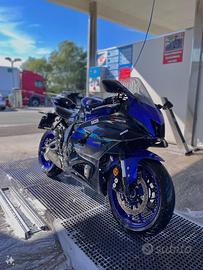 Vendo R7 fullpower per inutilizzo Comprata al concessionario nel 2024 nuova ha solo 1 proprietario Come componenti ha in foto: - Copri carter motore GB RACING - Manopole Domino blu - Scarico Yoshimura (max 104 db) - Pedane arretrate spider regolabili - Monoposto dietro blu - Carene bianche pista in plastica ABS - Quick shifter ORIGINALE YAMAHA - Gomme usate 2 pistate BSB (British Super Bike), circa 185 km TUTTO IL RESTO È ORIGINALE SULLA MOTO. Sono disponibili anche le carene originali con scarico originale, manopole ecc. Per piu info MESSAGGI SUBITO