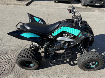 il quad non è stato depotenziato e sono disponibili tutti i pezzi originali e un treno gomme Maxiss.