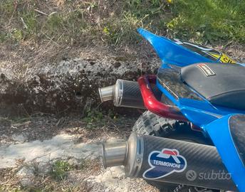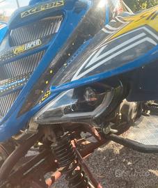 Salve vendo Yamaha raptor 660r, nasce da pista non targato, messe personalmente luci frecce e clacson, poggia piedi fatto in lamiera zingata, para colpi in ferro rimpicciolito, doppio scarico termignoni, grafiche personalizzate.