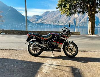 Vendo Yamaha RD 350 del 1990 con 25000 km. La moto è stata acquistata 2 anni fa come conservato completamente originale, sono il quarto proprietario e dispongo del libretto originale con i precedenti tre. Monta gomme nuove, è stato effettuato cambio olio, pulizia serbatoio e carburatori, sostituzione cannette varie, sostituzione tubi freni con tubi in treccia. Monta un portatarga/parafango posteriore in alluminio. Inoltre la moto è eauipaggiata con una coppia di scarichi Marri comprati nuovi ed usati per un'estate. Dispongo di un'altra sella, di un kit monoposto nuovo Gimbell e di tutte le parti originali sostituite compresi gli scharichi perfetti. Valuto vendita moti senza scarichi artigianali, ma non viceversa.