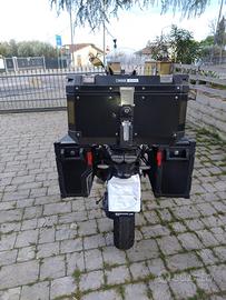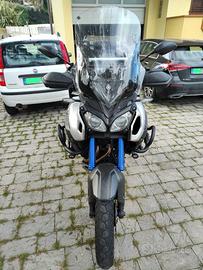 Vendo moto Yamaha Super Tenere XT 1200Z del 2016. La moto è allestita con: Valige laterali in alluminio originali, con sacche a tracolla annesse Bauletto GIVI trekker outback con supporto in alluminio Selle in memory ricamate con logo Supporto per borsa da serbatoio TankLock supporto per ricarica wireless Supporto per navigatore Parabrezza regolabile in altezza GIVI Fari ausiliari anabbaglianti GIVI predisposizione elettrica per fari alti Luci al led Voltmetro + presa di corrente 12V Deflettori aria da serbatoio Paracarene GIVi Paramotore in alluminio Cavalletto centrale Base d'appoggio maggiorata al cavalletto laterale Terminale MIV acciaio-carbonio Monta pastiglie Brembo anteriori e posteriori in buono stato, sostituito fluido freni e raffreddamento motore. Tagliandata regolarmente. La moto presenta circa 56 mila Km.