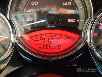 La moto è fornita di un bauletto da 47 lt, un parabrezza alto e uno sportivo.