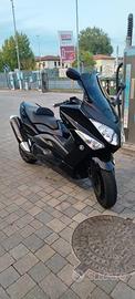 Splendido Yamaha Tmax tenuto in maniera maniacale con manutenzione ordinaria tenuto sempre al coperto vendo per poco utilizzo tutto originale ha solo variatore Malossi che esalta le prestazioni cupolino nero fume' originale modello con ABS doppio canale olio motore più olio trasmissione cambiato 3000 km fa cinghia variatore sostituita 2600 km pulizia impianto raffreddamento più liquido refrigerante più filtro aria 1000 km gomme Pirelli Diablo posteriore al 60% anteriore da sostituire vendo 4000 euro con sostituzione gomme anteriore a carico mio lo scooter si vede dalle foto le condizioni sono reali gentilmente no affaristi e non persone che hanno intenzione di far perdere tempo scooter visto è piaciuto non trattabile regalo tucano