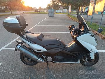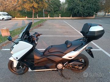 Vendo TMax 530 ABS perfetto di carrozzeria, neppure un graffio e di motore, revisione ministeriale appena eseguita, tagliando dei 40000 eseguita con numerosi lavori : cambio olio e filtro,cambio cinghia e rulli e campana,cambio pompa acqua,ingrassaggio e controllo perno pignone,cambio pastiglie ant. e post, filtro sprint filter, cambio liquido freni e raffreddamento, regolazione valvole, pulizia e regolazione cornetti di aspirazione ecc. Tutti i lavori eseguiti da officina Yamaha dimostrabile da fattura.Cupolino basso barracuda, manopole barracuda.Fornisco anche decalcomanie cerchi e specchietti del 560. Prezzo leggermente trattabile.