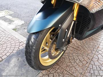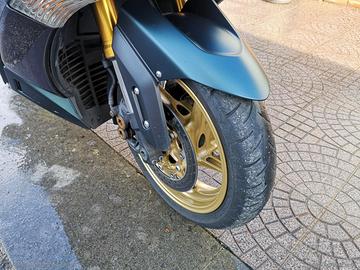 Di serie: Motore Bicilindrico, Abs, raffreddamento a Liquido, vano retroscudo e vano sottosella, doppio cavalletto, freno a mano, Forcella telescopica, doppio freni a disco da 267mm anteriori e da 282mm posteriori, cerchi da 15".