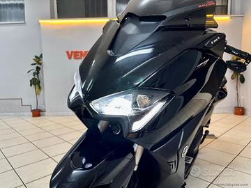 Icona di stile e sportività uno dei modelli piu belli e riusciti, che in questa versione esalta maggiormente lo spirito racing del maxiscooter di Iwata, a spingerlo rimane il bicilindrico frontemarcia da 530 cm3 da 46cv, total black con il parabrezza sportivo fumè e il portatarga in alluminio.