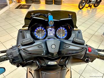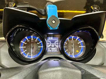 Icona di stile e sportività uno dei modelli piu belli e riusciti, che in questa versione esalta maggiormente lo spirito racing del maxiscooter di Iwata, a spingerlo rimane il bicilindrico frontemarcia da 530 cm3 da 46cv, total black con il parabrezza sportivo fumè e il portatarga in alluminio.
