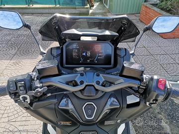 Con: Motore Bicilindrico parallelo, Abs, computer di bordo, strumentazione TFT da 7 gestibile con il joystick laterale e telefono collegabile tramite app o cavetto, 2 mappe T S, Ride by Wire, Luci a Led anteriore e posteriore con frecce integrate, ampio vano sottosella, cassetto retroscudo con presa Usb, leva freno a mano, doppio cavalletto centrale e laterale, freni a disco anteriori da 267mm e da 282mm al posteriore, cerchi da 15 .