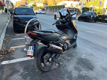 Yamaha T-Max 560 in allestimento Tech Max, equipaggiato con scarico Termignoni che esalta il suo carattere sportivo e il sound distintivo.