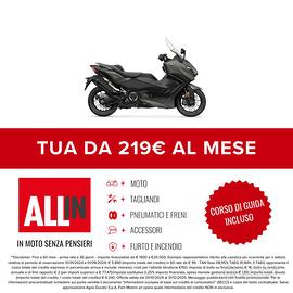 ALL-IN: anche senza acconto a partire da 99€ hai compreso: Moto, Assicurazione Incendio e furto, Manutenzione, Accessori!! Richiedici un preventivo personalizzato