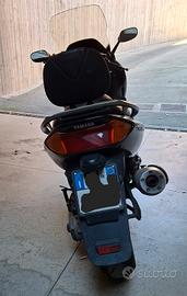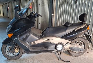 Vendo Yamaha T Max modello italiano XP500, immatricolazione 9/2004, secondo proprietario. Modello a iniezione con doppio disco anteriore. Colore nero metallizzato con inserto oro, tutto originale prima vernice. Mai modificato. Motore, variatore, trasmissione, carene, parafanghi, fari, impianto frenante pinze e dischi, fanali, strumentazione, sella, tutto originale. Schienalino sella accessorio originale. Usato sempre in città per brevi tragitti casa lavoro, max 20km al giorno. Mai autostrada. Km 58.800. Tagliandato fatto ogni anno. Sostituito catena distrubuzione e tendicatena a marzo 2024. Sostituito paraolio mozzo posteriore a settembre 2023. Pompa acqua sostituita a aprile 2023. Tagliando olio e filtro + sostituito batteria avviamento a luglio 2025. Motorino avviamento nuovo sostituito a marzo 2025. Pastiglie anteriori nuove sostituite a giugno 2025. Gomma posteriore al 50%, anteriore al 30%. Completo di documenti, manuale originale, kit attrezzi originale, doppie chiavi originali e chiave rossa originale. Regalo casco jet. Vendo per cambio scooter. Visionabile ad Alzano Lombardo o zona Bergamo. No esportazione, no estero. Prezzo trattabile.