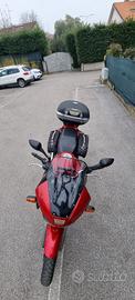 La moto ha gomme seminuove,borse laterali in tessuto e bauletto Givi.