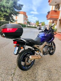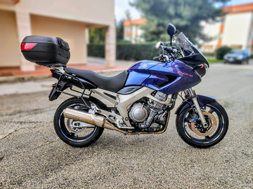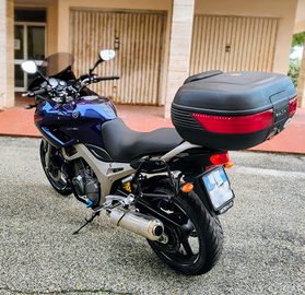 Moto tenuta in perfette condizioni, tagliando in corso a mie spese perché la utilizzo quotidianamente, secondo e affezionato proprietario, iscrizione ASI in corso a cura mia. Moto molto leggera per la categoria che garantisce coppia ai bassi, con passo lungo quindi comoda per viaggi e allo stesso tempo utile in città. Divertente e sincera alla guida, indistruttibile per affidabilità. Tenuta interamente originale, utilizzata molto per viaggi, completa di kit dedicato per attacchi givi laterali e bauletto. Barre paramotore GIVI e sella interamente rifatta. Regolazione gioco valvole pignone e catena fatti a circa 50k km. Gomme Dunlop Roadsmart IV (circa 4000 km fatti). Vendo per upgrade a moto più recente e di categoria differente.