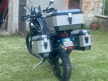 Set Givi Trekker Alaska inox, valige laterali 36lt con sacca interna impermeabile, bauletto posteriore 56lt con rivestimento interno e poggia schiena passeggero telaietti e piastra alluminio dedicata, usate una sola volta come nuove.