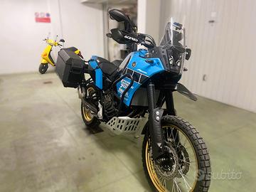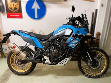 Vendesi Yamaha Tenere 700, completa di paramotore, telai, borse, paramani, parasteli e parafango alto. Dispongo di tutti i pezzi originali, compreso l’adesivo giallo dei fianchetti laterali, se si vuole riportare la moto nella versione originale. Tagliando appena effettuato, revisione appena fatta, catena DID oro appena montata. Non presenta difetti. Dispongo del db-killer. Pneumatici Pirelli Scorpion Rally appena montati. Mai enduro e/o strade bianche. Tagliandi tutti in casa madre.
