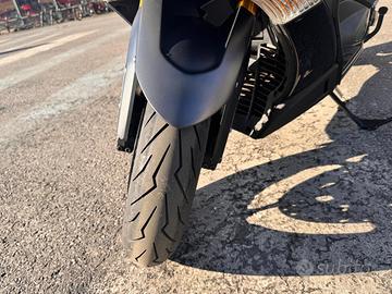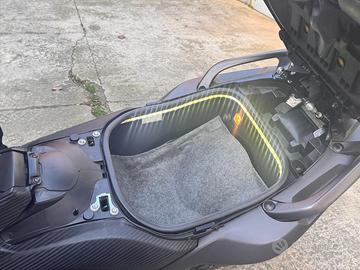 antifurto originale Yamaha, forcella steli rovesciati (modello 2015/2016), presa accendisigari sotto sella, gomme appena sostituite, tagliando eseguito 500 km fa, batteria nuova. Lo scooter non ha nessun graffio, tenuto molto bene sempre in box