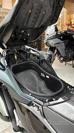 Screen elettrico, manopole e sella riscaldabili, blocco cavalletto, mono ammortizzatore posteriore regolabile in pre carico, strumentazione retro illuminata, schermo 7 pollici TFT con connettività smartphone, cerchi forgiati in lega leggera.