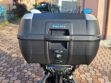 Dotata di: scarico completo Akrapovic (OMOLOGATO), bauletto GIVI, parabrezza GIVI, telaietti per borse laterali (borse non presenti), cavalletto centrale, ABS, Seconda chiave presente, Accensione elettrica, Baule, Catalizzatore, Parabrezza.