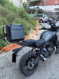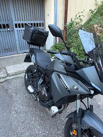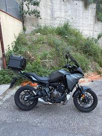 Vendo Yamaha Tracer 7 colore Tech Kamo ( grigio opaco) immatricolata il 14 aprile 2022, in condizioni perfette. Con soli 16.807 km, utilizzata prevalentemente per uscite nel tempo libero, sempre riposta in garage e mai sfruttata in condizioni gravose. La moto è stata sempre tagliandata regolarmente presso officine ufficiali Yamaha. Accessori: Bauletto Kappa da 45 litri (capace di ospitare comodamente due caschi jet o un integrale) con le relative barre di supporto specifiche; Parabrezza maggiorato FACO che offre un'ottima protezione aerodinamica rispetto all'originale (+ parabrezza originale) ; Tamponi paracarene; Supporto per lo smartphone dotato di sistema antivibrazioni.
