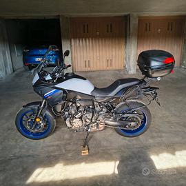 vendo bellissima Yamaha tracer 7 700cc unico proprietario anno 05/2021 km 24750 Tagliandi regolari officina Yamaha completa di bauletto k49 e borse v35 givi paramotore, traversino portapacchi cellulare, presa USB originale gomme al 60% regalo parabrezza estivo e sella ribassata originale Yamaha