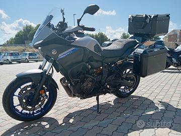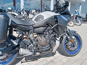 Vendo bellissima e superaccessoriata Yamaha Tracer 7 del 2022 con 42000KM percorsi. Moto unico proprietario. Accessoriata con cavalletto centrale, sella confort, paramotore e para carena e tris valigie givi trekker dolomiti in alluminio. Il reparto sospensioni è stato migliorato adottando un mono posteriore ohlins , mentre alla forcella sono state installe molle progressive e olio specifico sempre ohlins. Piacere di guida e confort garantiti. Viene venduta con tagliando alla consegna e un anno di garanzia. Valutiamo permute di ns gradimento ed effettuiamo finanziamenti in sede. maggiori info al