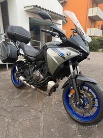 Vendo splendida Yamaha Tracer 7 GT depotenziata a 35 kW, ideale anche per patente A2. La moto è in condizioni impeccabili, con soli 12.000 km percorsi e sempre mantenuta con tagliandi ufficiali Yamaha, tutti certificati. Ancora coperta da garanzia ufficiale fino a marzo 2028. Allestimento GT completo, che include: - Sella comfort per lunghi viaggi - Tris di valigie originali Yamaha (realizzate in collaborazione con GIVI), pratiche e capienti Moto perfetta sia per uso quotidiano che per viaggi, pronta all’uso senza alcun intervento necessario. No perditempo, solo interessati seri.