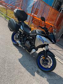 Completa di tris di valigie originali Yamaha (apertura con unica chiave), leve freno/frizione nere sportive (originali presenti). Il modello GT comprende di serie sella comfort e parabrezza alto.